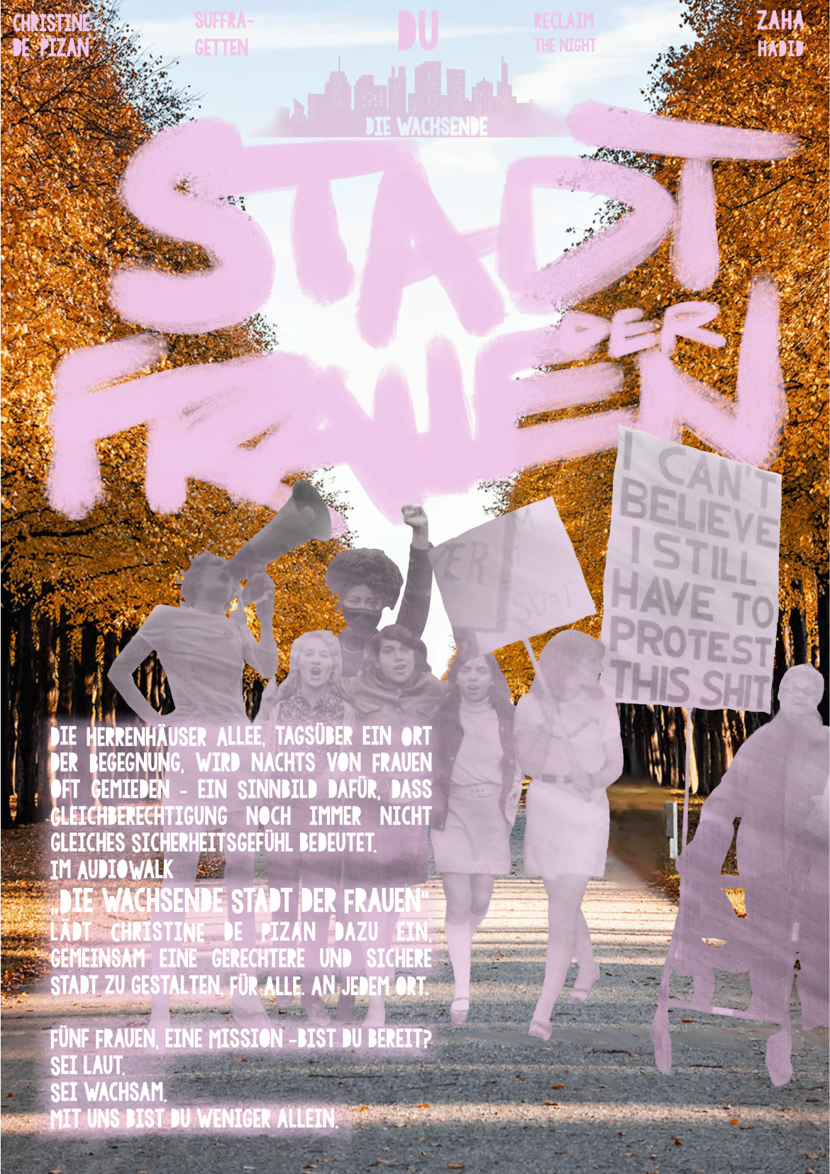 Der Audiowalk „Die wachsende Stadt der Frauen“ thematisiert, dass öffentliche Räume nicht neutral sind, sondern unterschiedlich erlebt werden. Besonders nachts und aus weiblicher Perspektive. Der Walk übersetzt diese Beobachtung in eine künstlerisch-konzeptionelle Audioarbeit, die historische Kämpfe mit heutigen Fragen an Stadtgestaltung verbindet.